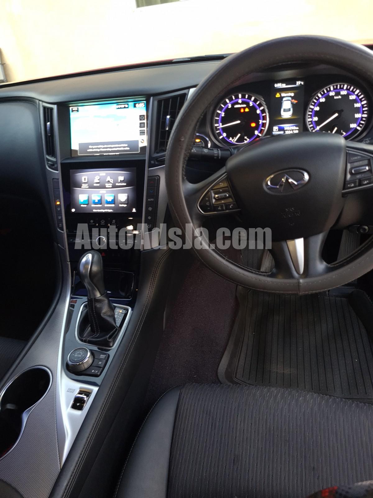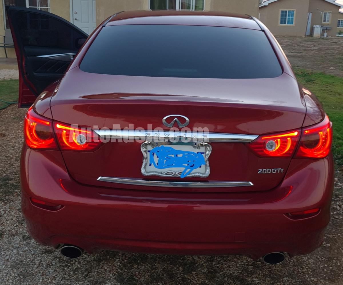 2014 Nissan Skyline 2.0Turbo. First owner in Jamaica, Push to Start & Remote Start Features, keyless entry, Turbo charged, Alarm system, Reverse camera, Tiptronic, Dual Screen Multi-Media Entertainment System with English language settings, Touchscreen DVD/CD player, Voice Command, Bluetooth connectivity, Multifunction steering wheel controls, Cruise control, 19 Inch Sport Rims & RFT Run Flat tires with TPMS Tire Pressure Monitoring System, Carbon Fiber Indicator side mirrors, Automatic light controls, Full Factory LED Headlights with Daytime Running Lights, LED Fog lights, Factory LED Door handle lights, Half leather fully powered seats, Color keyed bumper, 2 keys available, Interior immaculate condition, Dealer serviced, Fully powered. Price Negotiable.